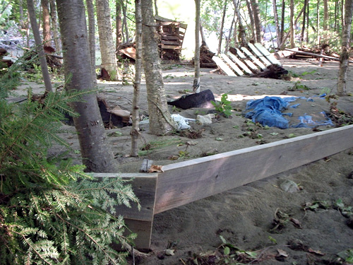 Can't tell from the pic, but the mud inside the buildings is sloped/slopped at a depth of about 2 feet. Not sure if you've ever tried to shovel mud, but heavy is the word.